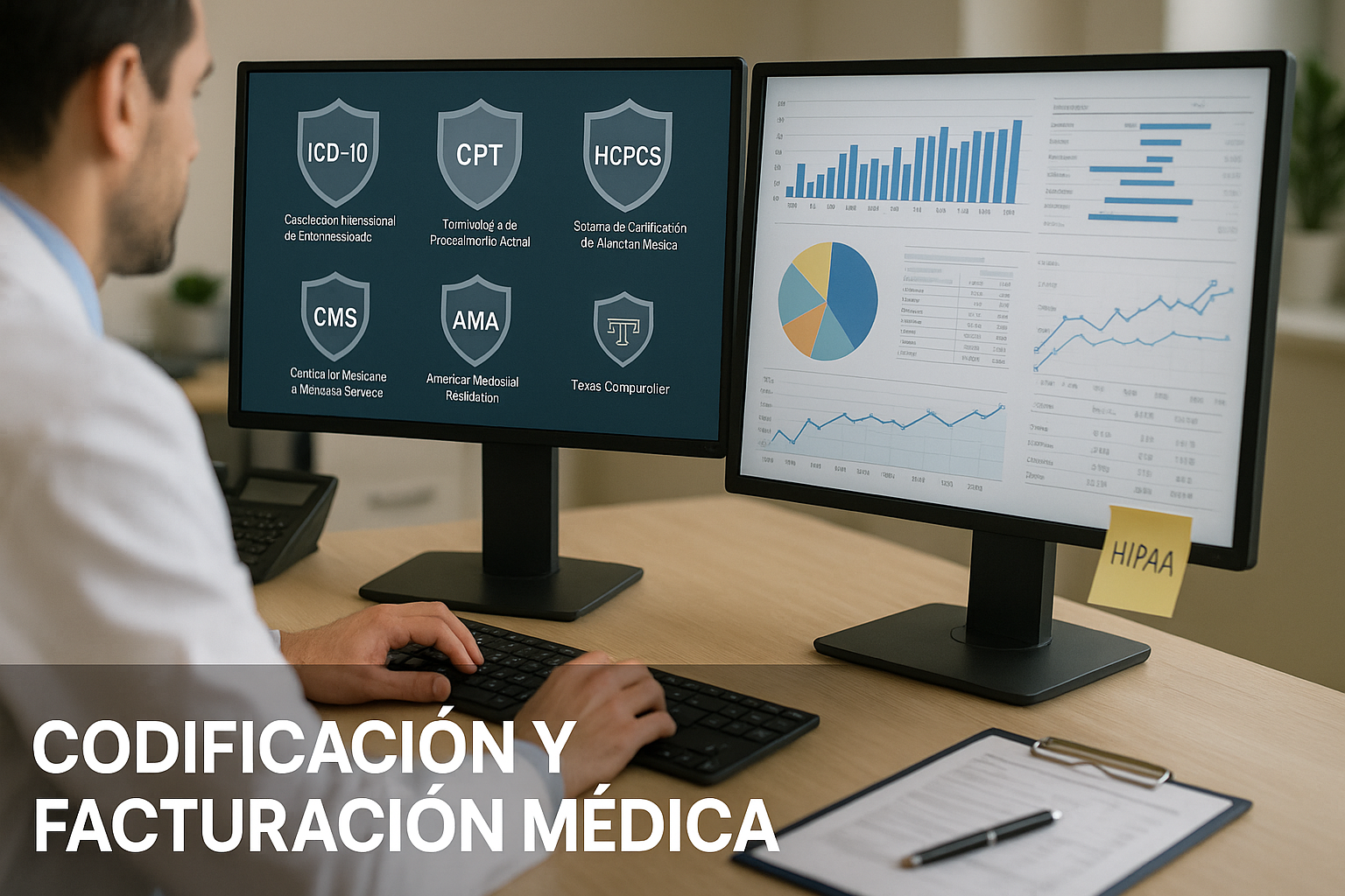 • Codificación profesional con estándares ICD-10-CM, CPT y HCPCS.